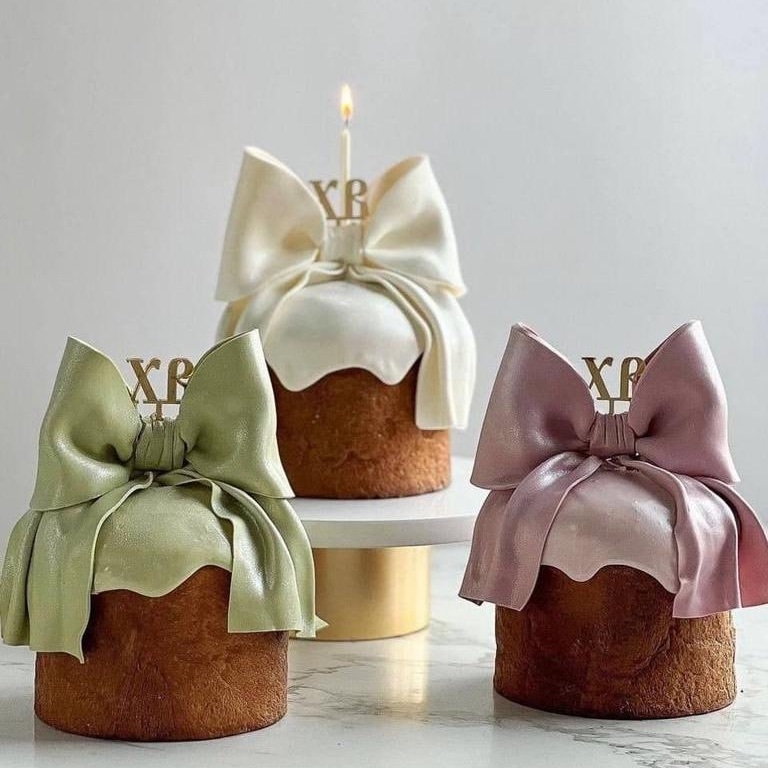 Все куличи в этом году упакуем в подарочную коробочку с открыткой и перевяжем красивой атласной лентой, это учтено в цене. Передаем в белом крафтовом пакетике.